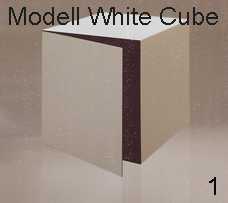 Der White Cube ist eine Sammelbox, die physikalisch durch ihre Maße, Öffnungs- und Präsentationsmöglichkeiten bestimmt ist, konzeptionell durch Auflage, Serialität, Thema, Konstellation der Arbeiten und Medienformate in- und außerhalb des Kubus.